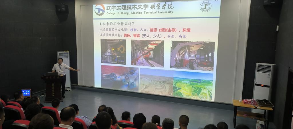 采矿工程系教工党支部书记荣海副教授在煤矿虚拟仿真教学研究中心采用360度沉浸式虚拟仿真设备为新生家长演示了现代化煤矿的工作环境及采煤作业流程。通过演示,家长们对学生的未来就业环境有了更加直观、清晰的认知,更好帮助新生建立专业自信和大国工匠情怀。